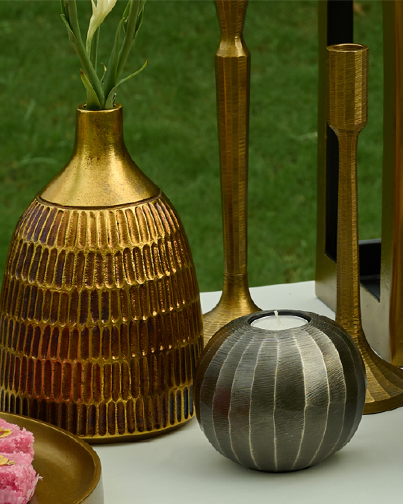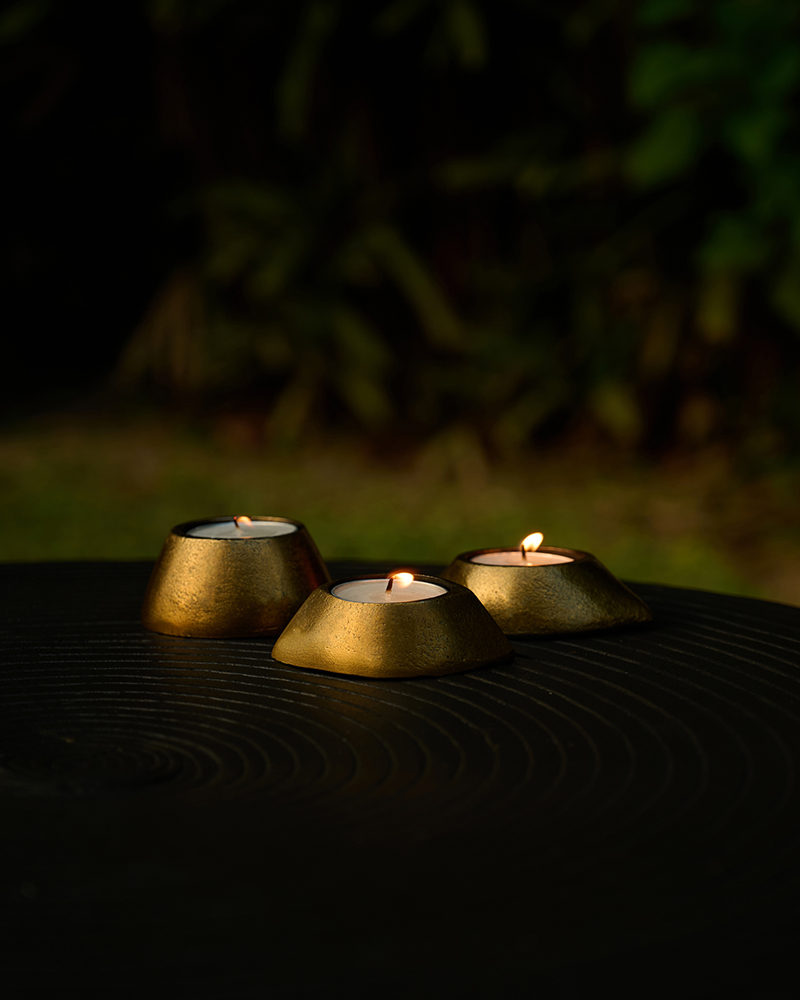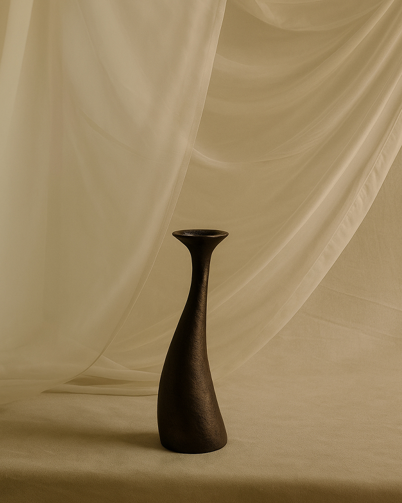 The collection reimagines Mediterranean ruins as modern precision, bronze and brass composed in a monolithic envelope, where light and shadow become structure and objects read as contemporary relics.