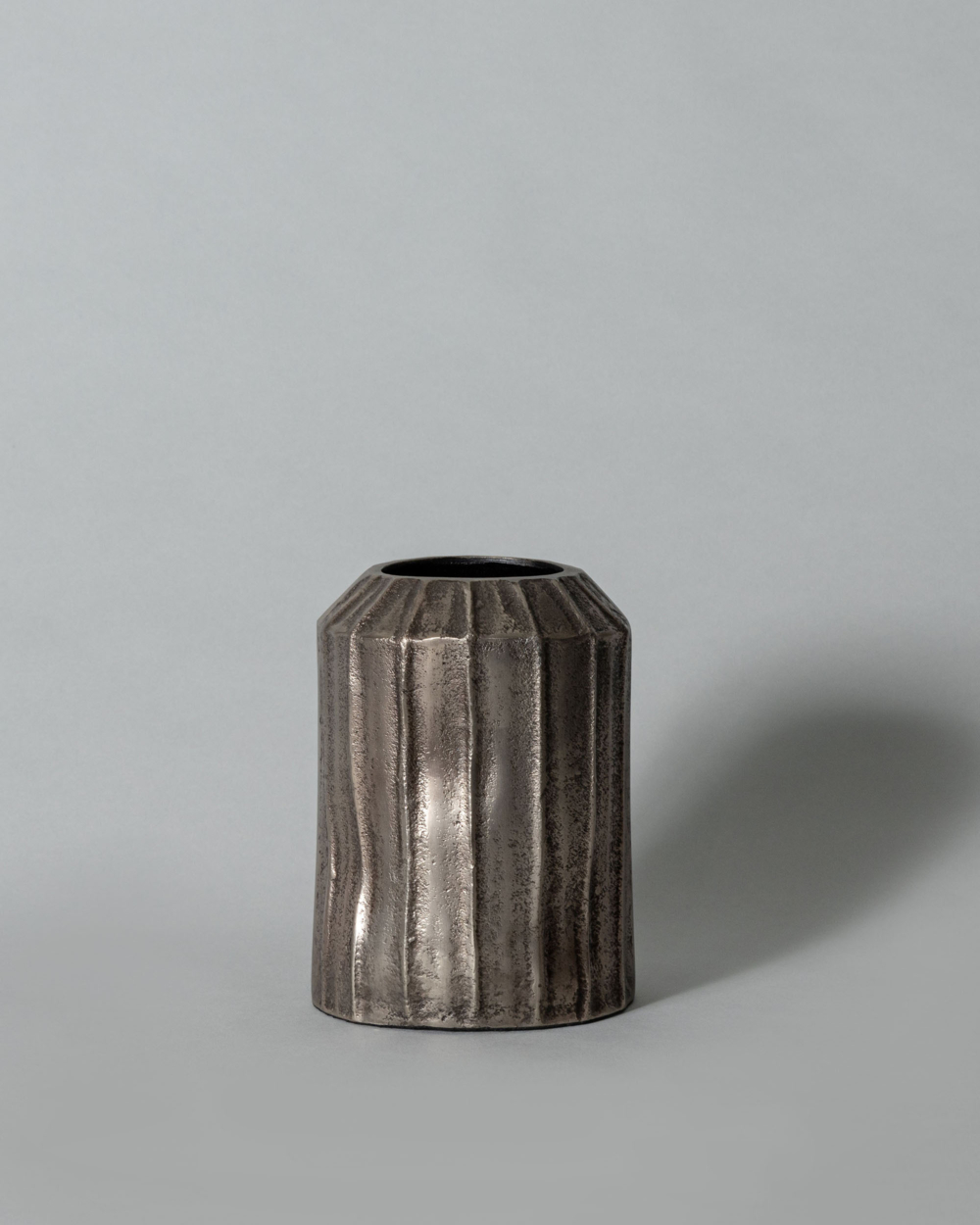 • Mantels and Shelves: Smaller iron or nickel vases punctuate vertical space, creating balance without crowding.