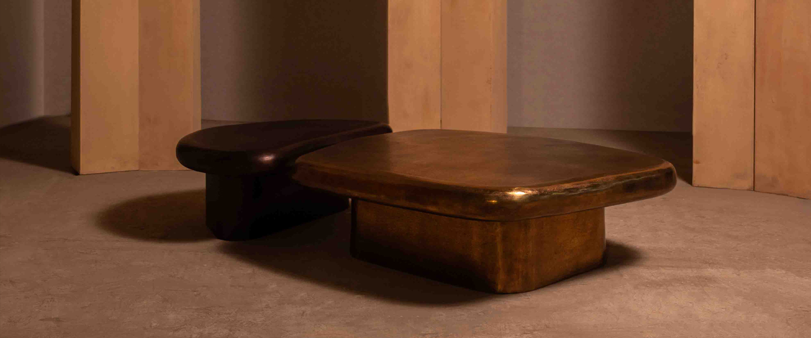 Sanctum is an immersive chamber carved from light and stone. Drawing on Mediterranean architectures, Greece, Italy, the Levant, where marble, travertine, and cast metals once defined sacred and civic life, the collection reinterprets “ruin” as precision: quiet masses, distilled geometry, and shadows used as a design material. Marble tops hover with engineered lightness; travertine piers read as fragments of a colonnade; bronzes carry soft patinas that record touch and time.