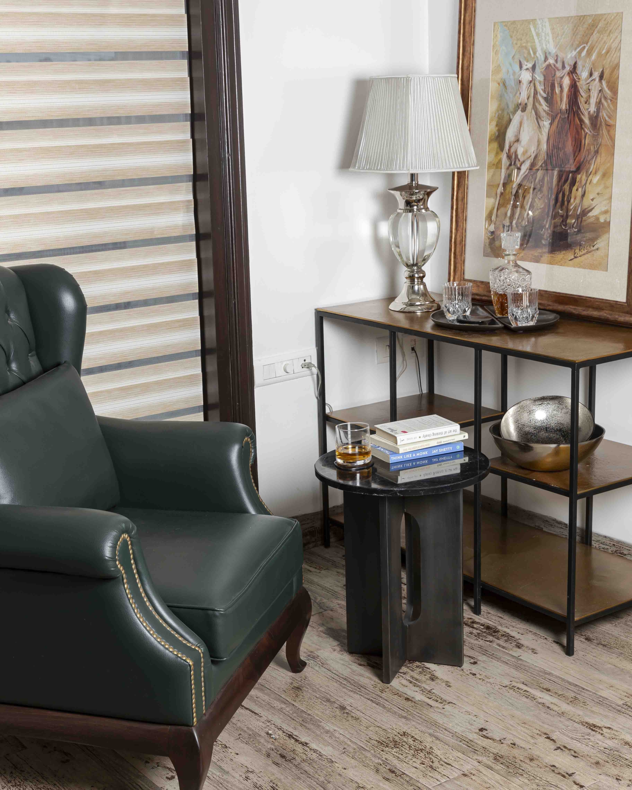 Offset and linear, metal and marble. Opposite attract in perfect harmony in Eros End Table.