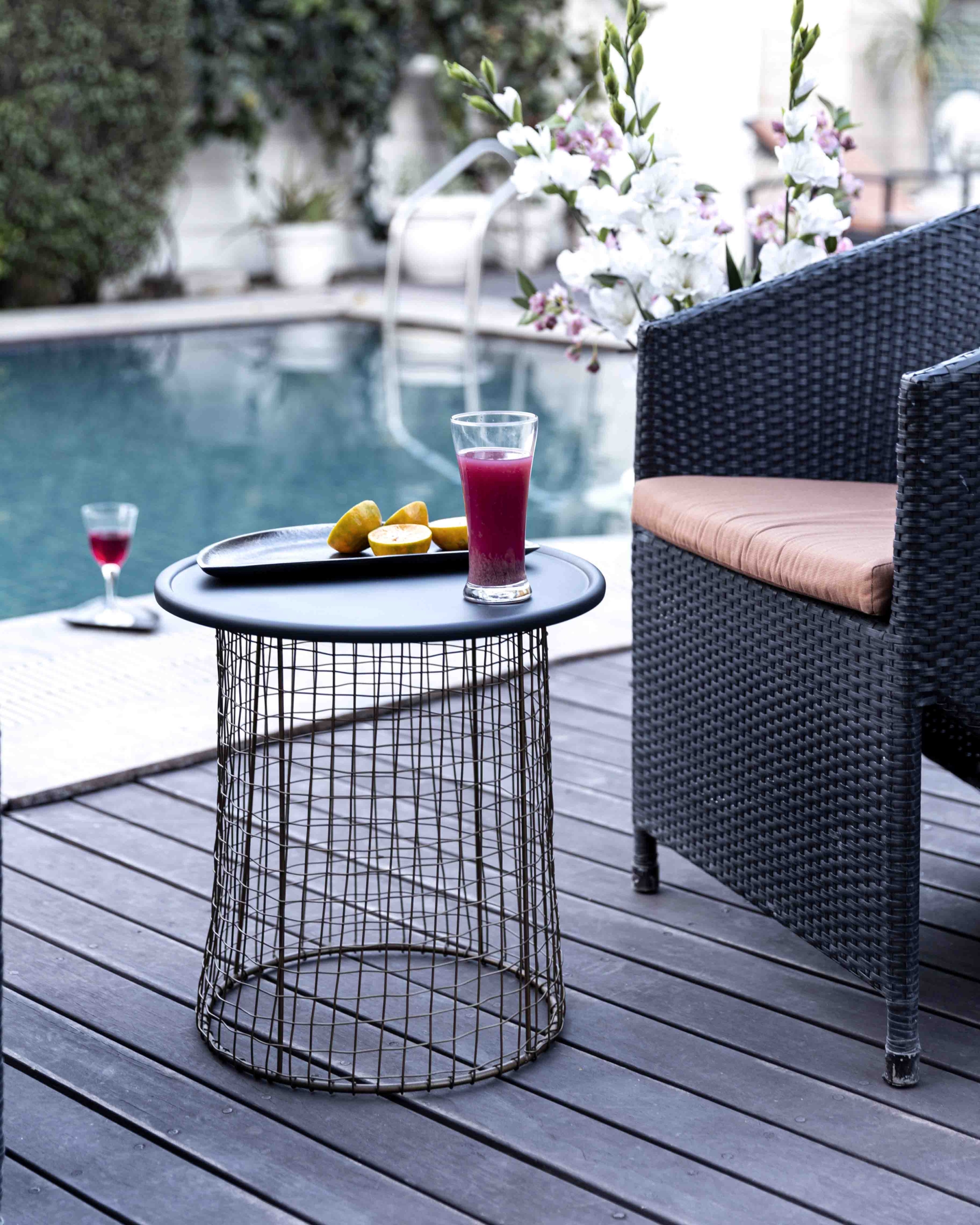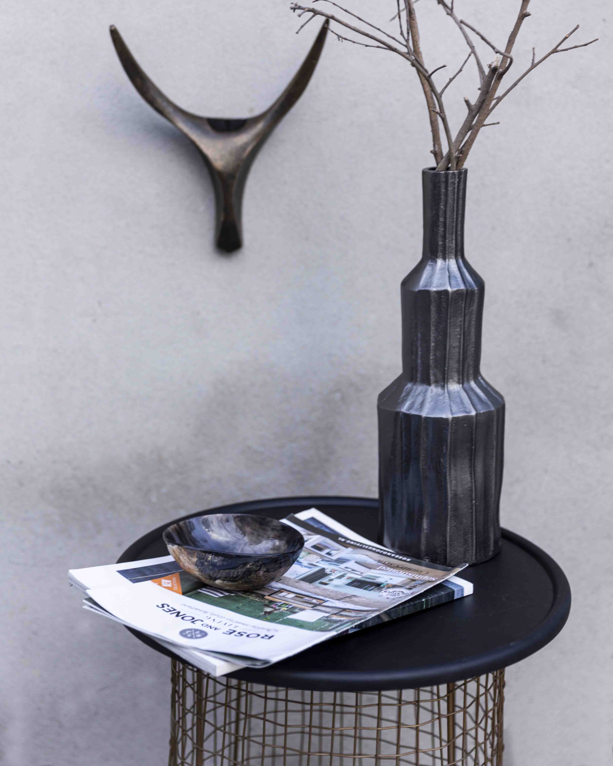 The striking Hestia End Table looks astonishing assembled together as a mixed-material accent reflecting the rhythm of modern architectural construction.