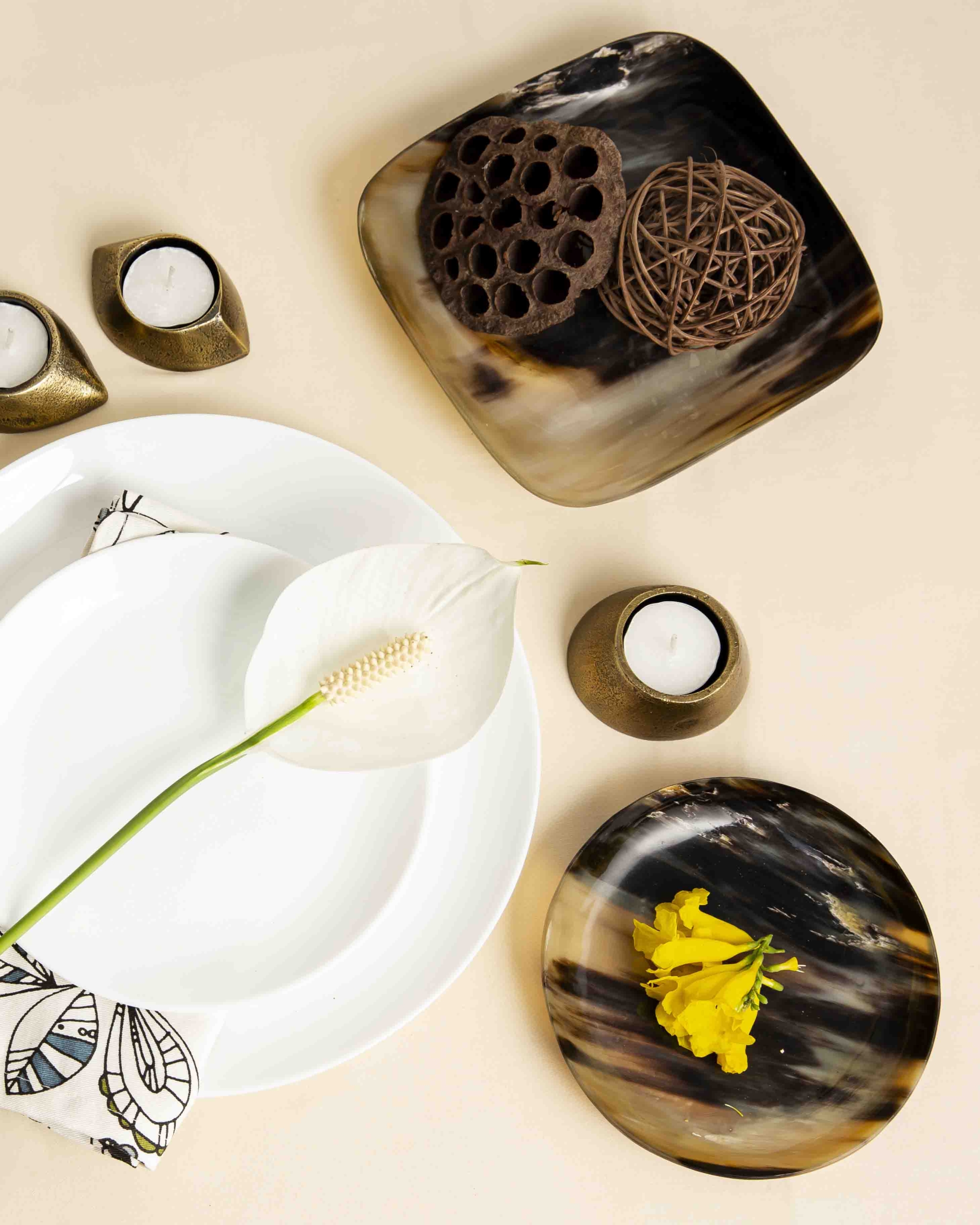 Our Jacob Bowl made of Natural horn goes through dampening & heating which is further molded into a sculptural bowl to serve up dishes or to store trinkets. Varying light-to-dark tones & subtle shape differences make each bowl unique. Made of biodegradable materials, each product from this collection is designed keeping in mind a modern yet sustainable look.