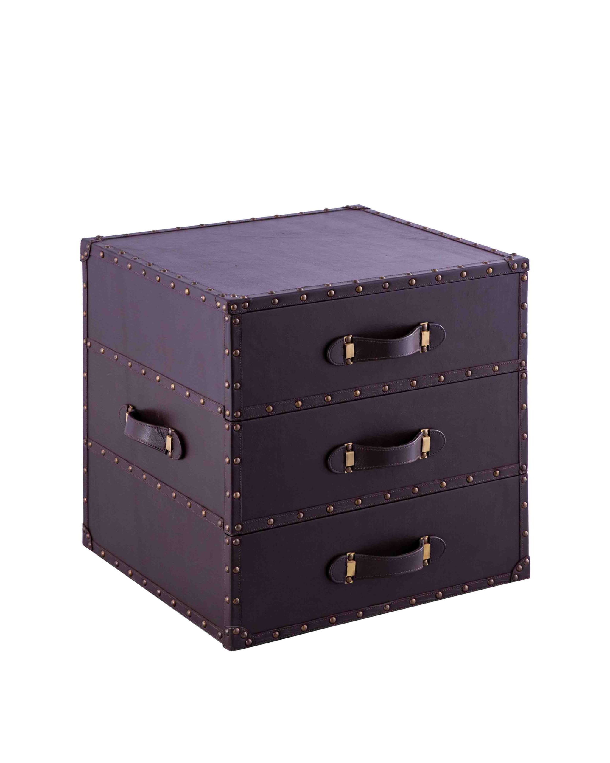 Leathered’s playful design hides its storage options in a dimensional checkerboard of bleached wood. Whimsical with sculptural style, the Leathered End table is a Taho Living exclusive.