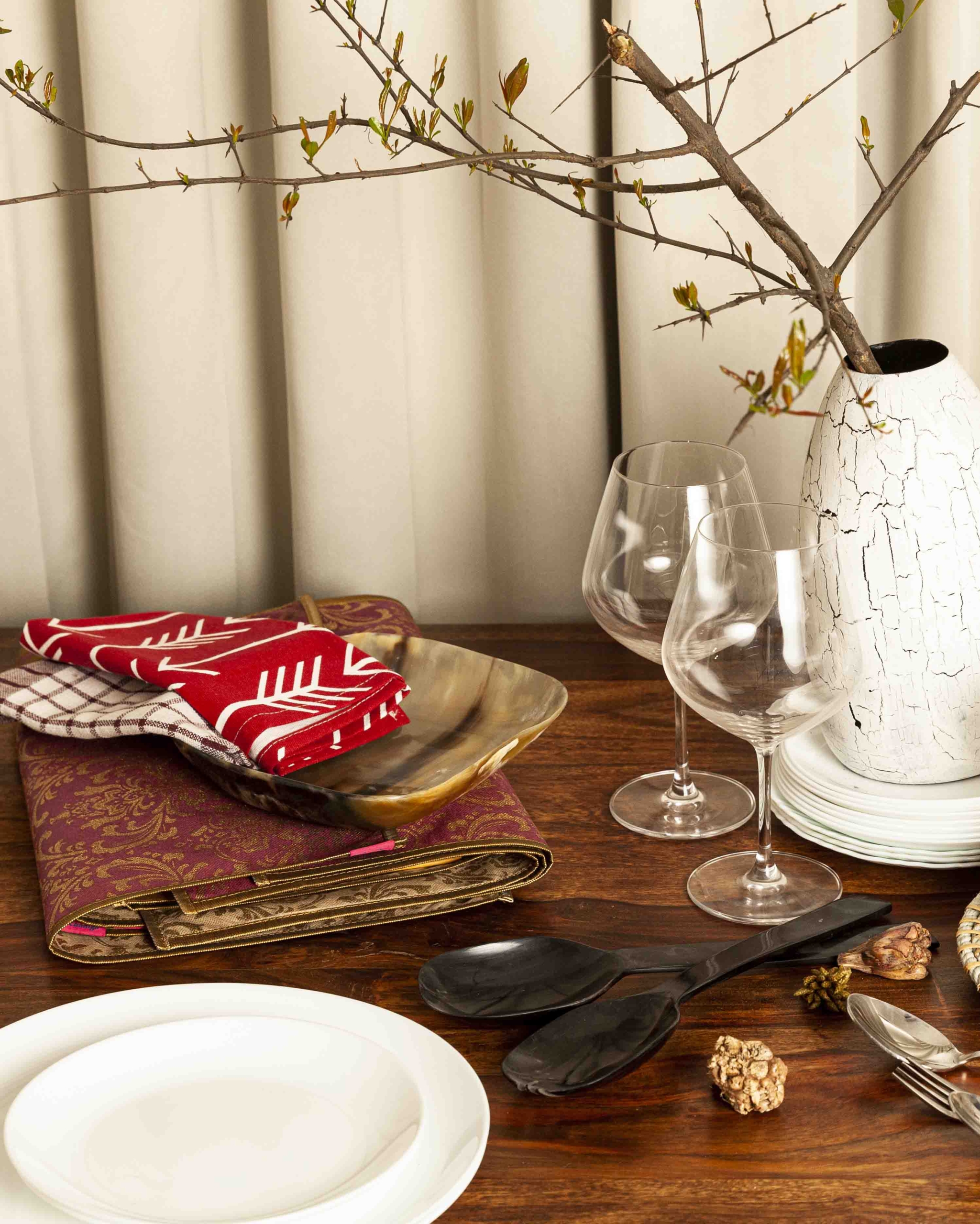 Sloped, squared dish in natural horn is sized to perfectly accommodate condiments, dips, deserts or indivdual servings of appetizers. The petite, gracefully curved bowl, a Taho Living exclusive, pairs beautifully with our other styles from our Horn Collection. Made of biodegradable materials, each product from this collection is designed keeping in mind a modern yet sustainable look.