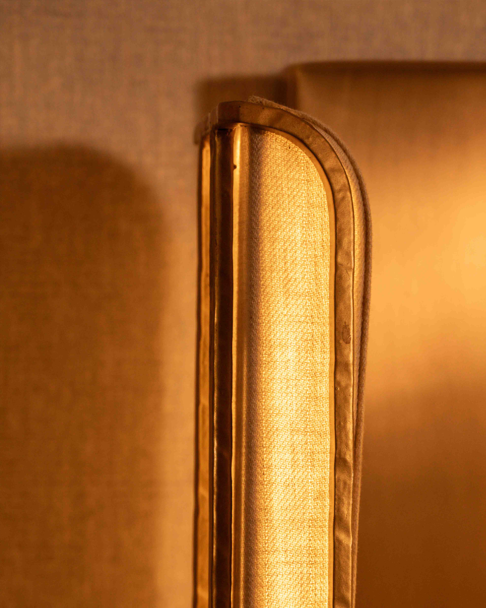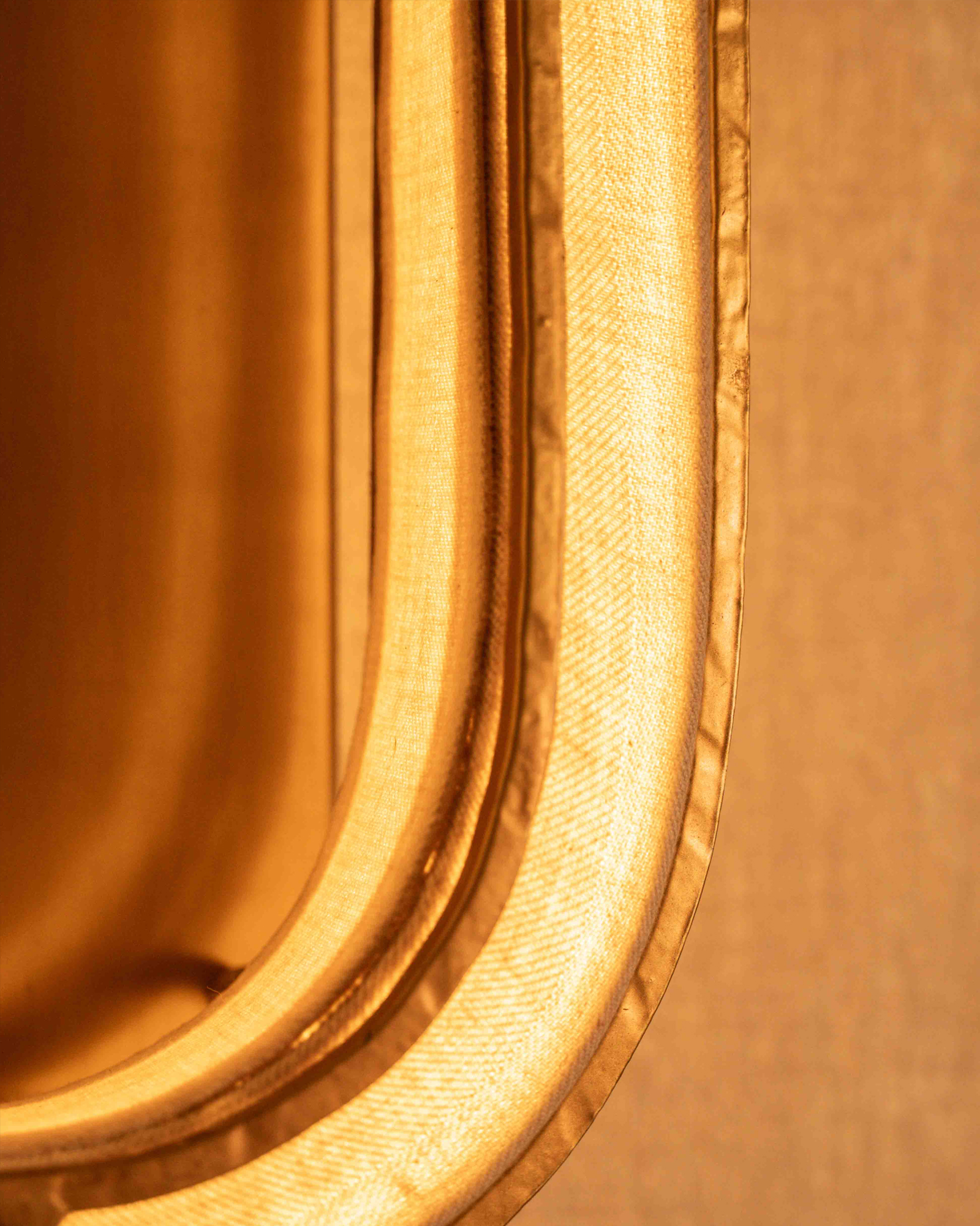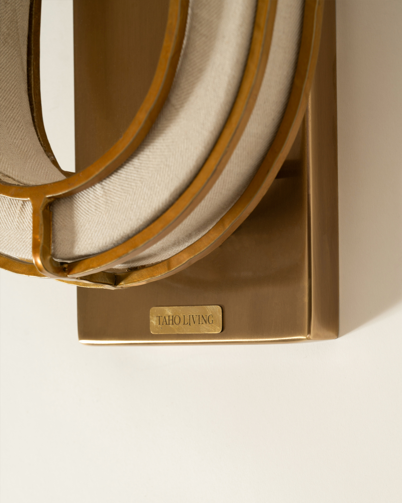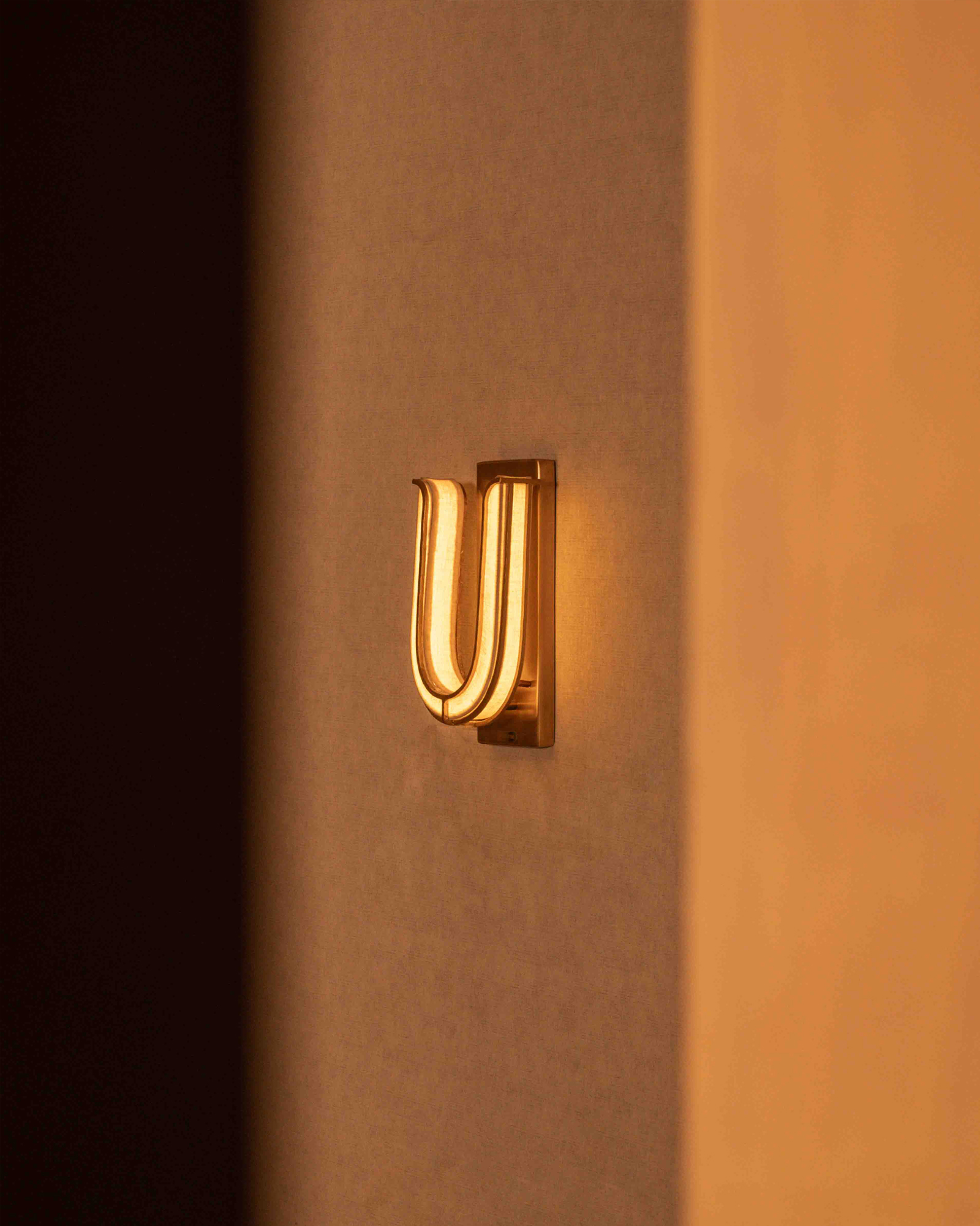Qandil Wall Lamp is shaped as a sculptural curve, where a brass sheet is formed into a fluid U and held by forged iron with deliberate restraint. Finished in an antique patina, it casts light inward and outward, creating depth rather than glare. Designed to read as an object by day and an atmospheric presence once illuminated.