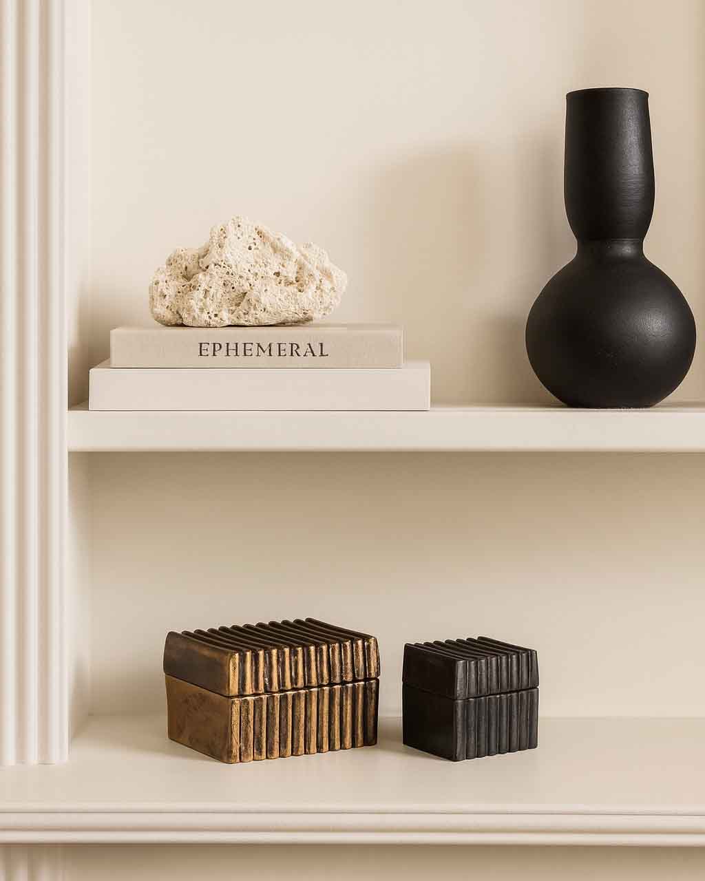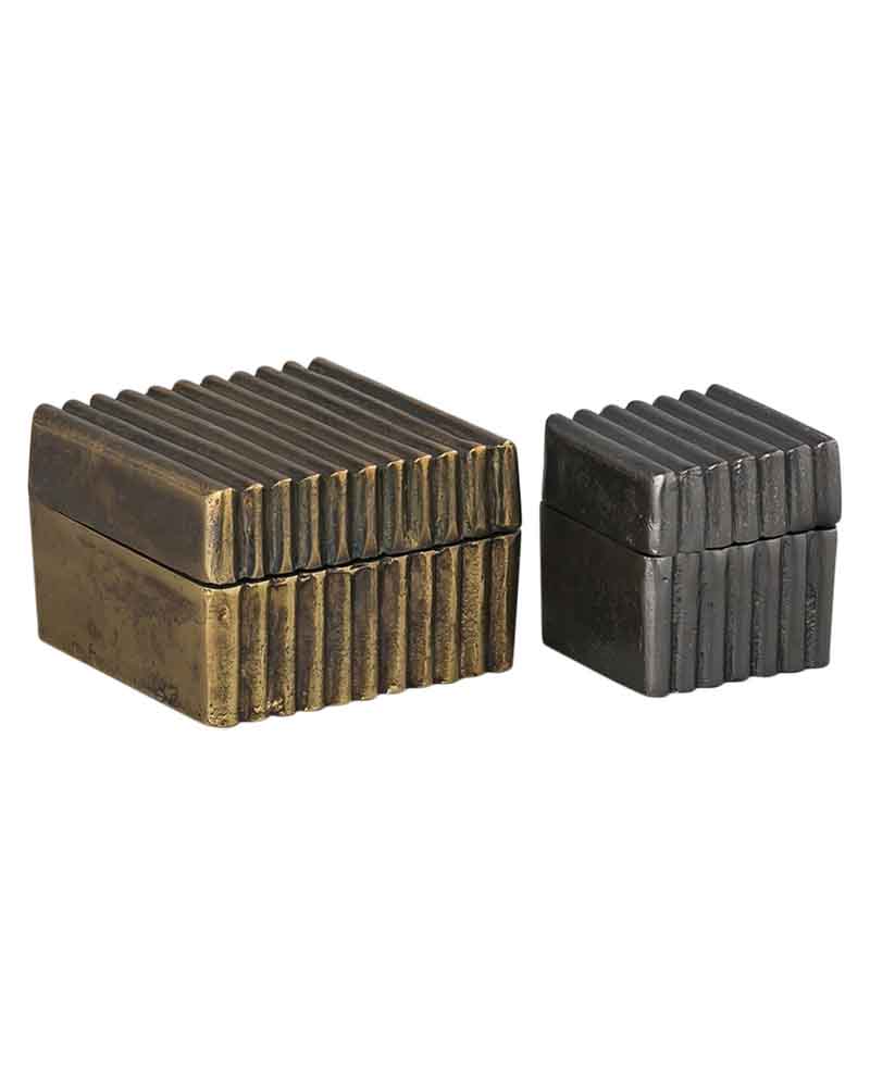 The Trayva Box Set is a beautiful collection of two boxes, each crafted with precision from high-quality cast aluminium. The name “Trayva,” meaning “treasure” or “valuable” in Sanskrit, reflects the true nature of these stunning boxes. Whether as a standalone piece or as a set, these boxes bring together the timeless beauty of superior craftsmanship, elegant design, and functional storage. A perfect blend of artistry and practicality, the Trayva Box Set is designed to protect and elevate your most cherished belongings.