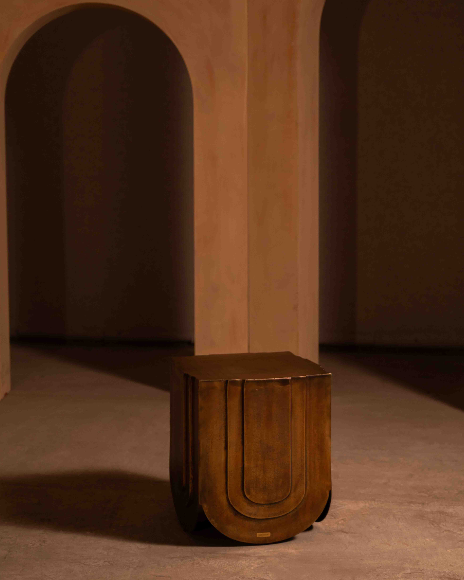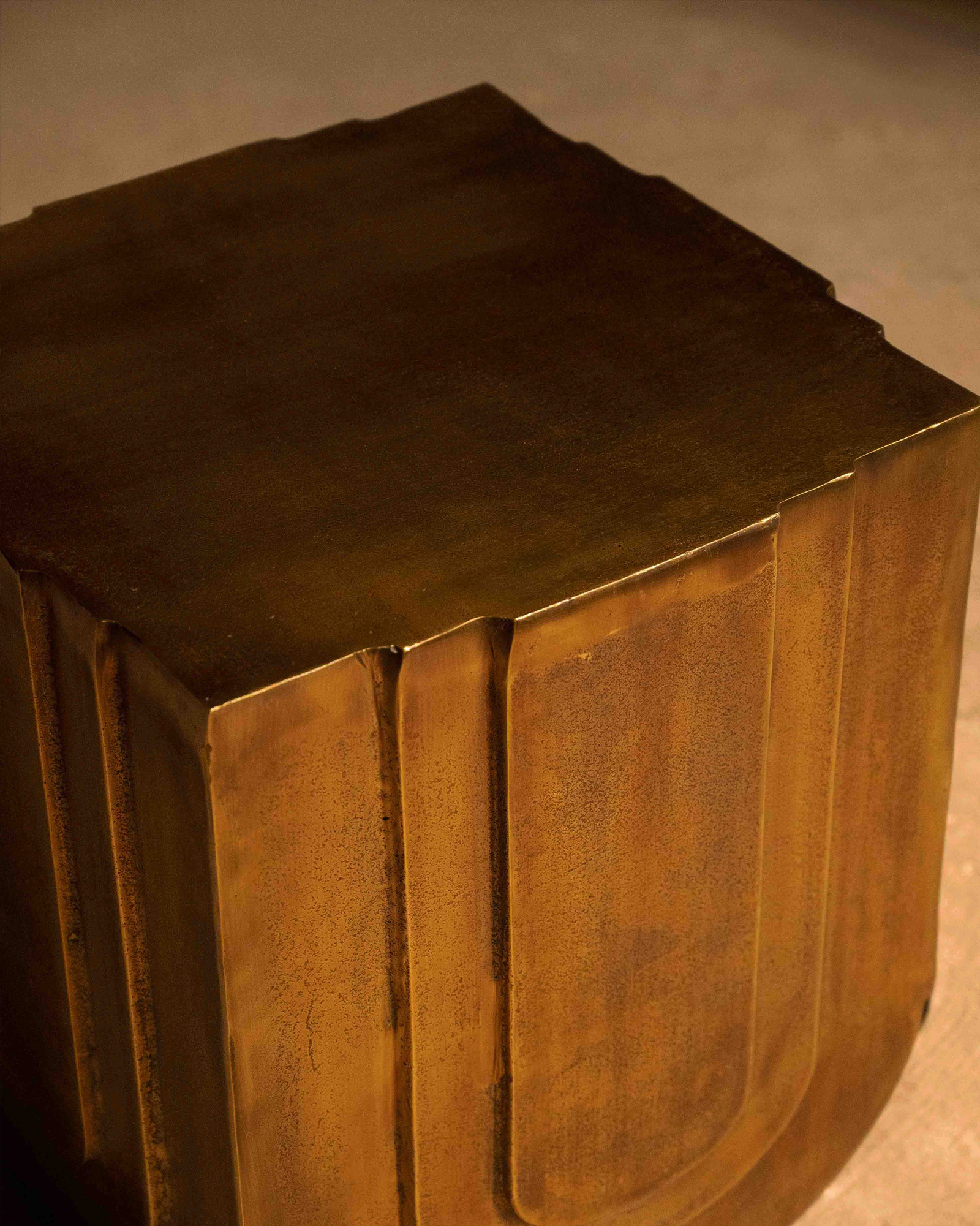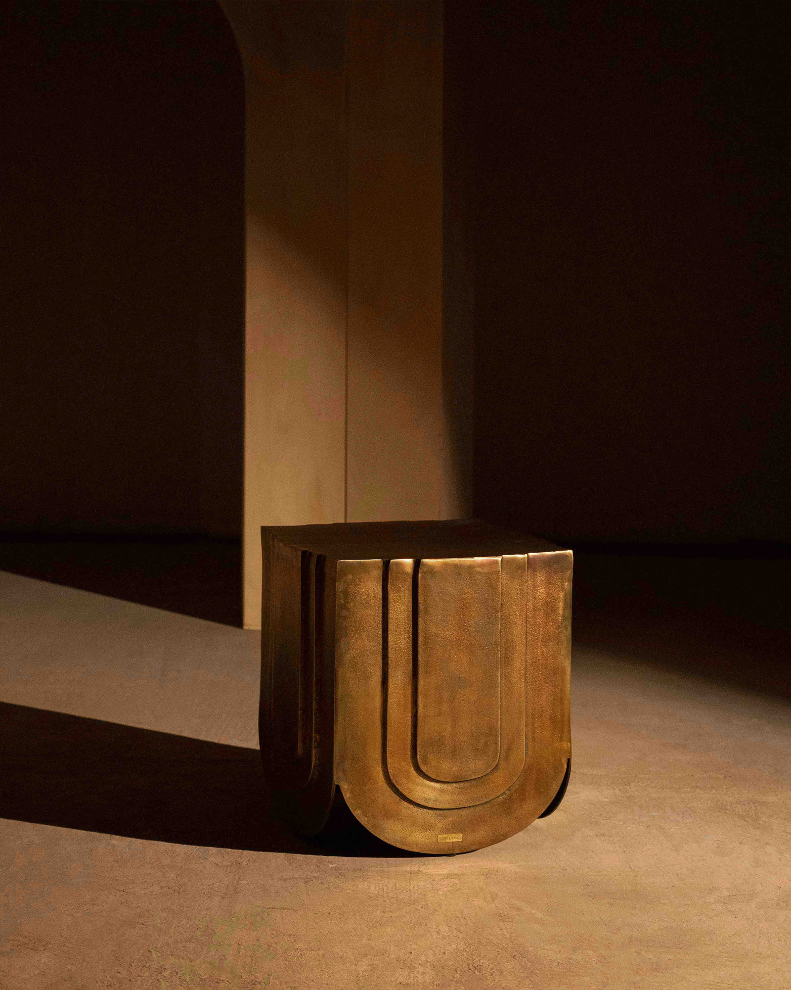 The Veil Side Table draws from the language of gathered fabric, translated into metal with sculptural clarity. Cast aluminium forms fall into gentle curves, finished in antique brass that deepens with light and shadow. Compact yet expressive, it works as a refined side surface or a standalone object, adding visual weight and material warmth to considered interiors.