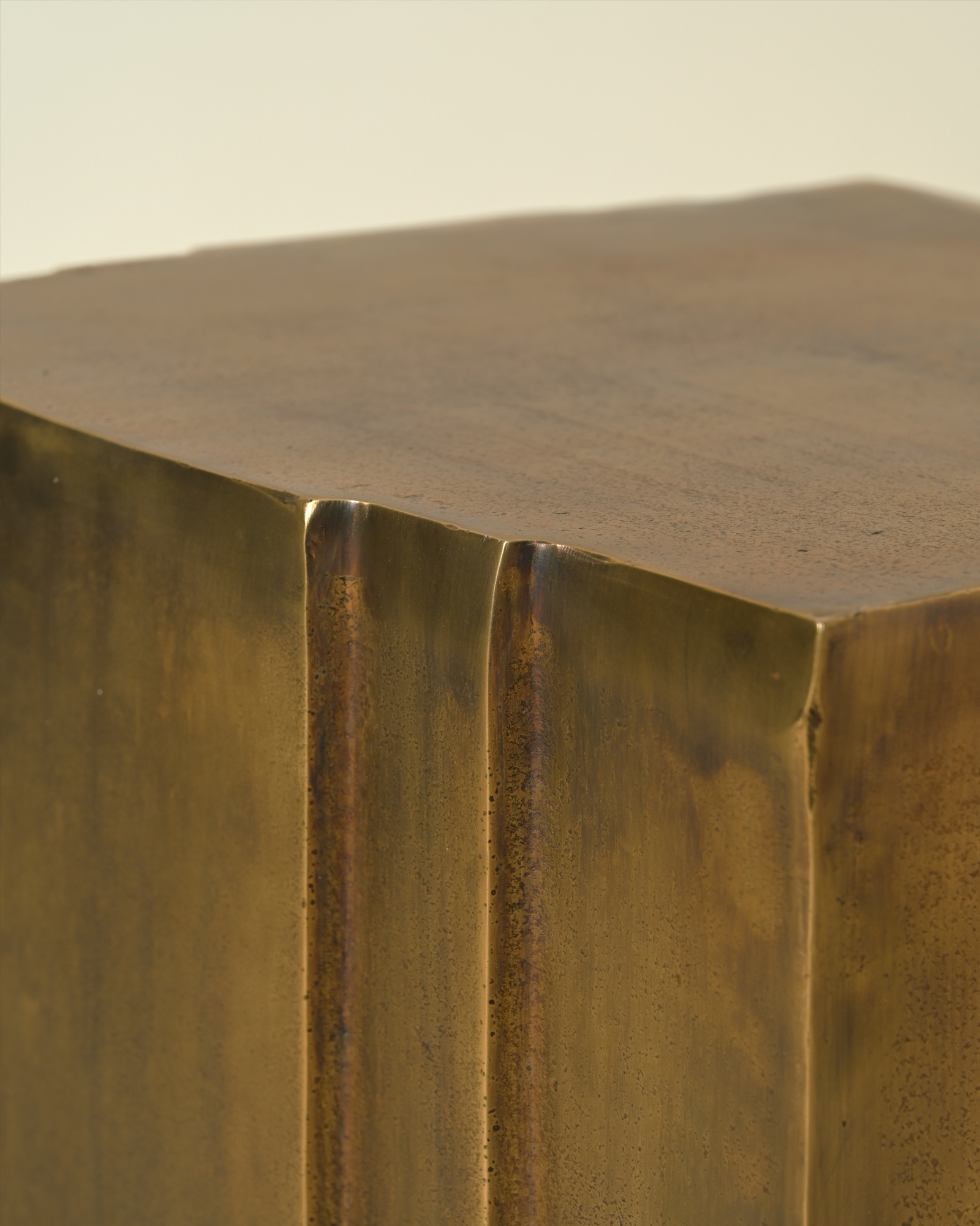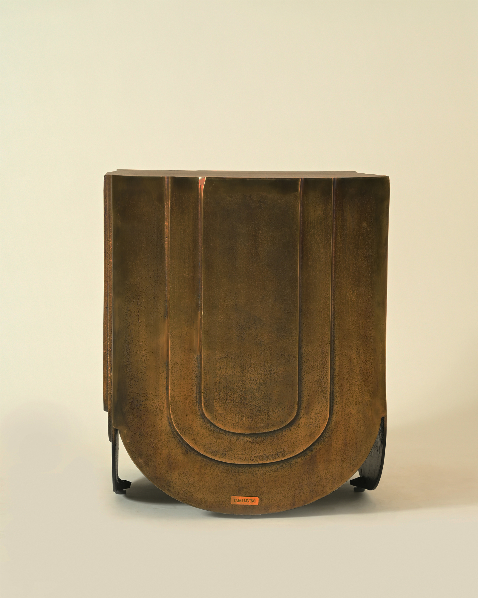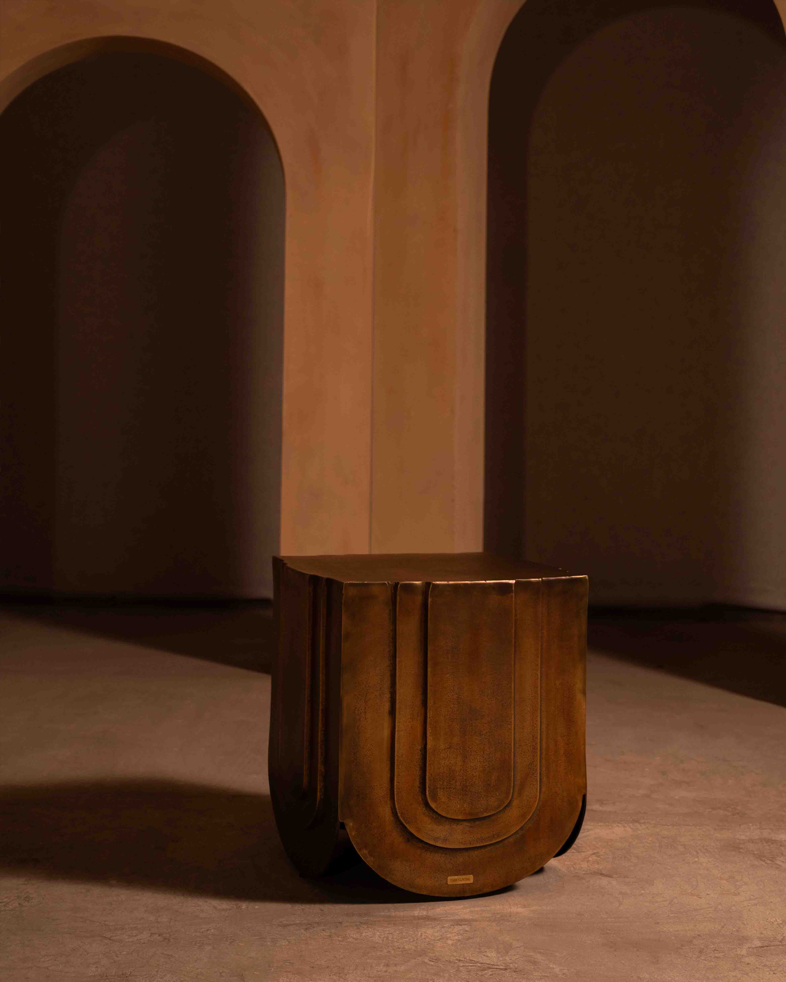 The Veil Side Table draws from the language of gathered fabric, translated into metal with sculptural clarity. Cast aluminium forms fall into gentle curves, finished in antique brass that deepens with light and shadow. Compact yet expressive, it works as a refined side surface or a standalone object, adding visual weight and material warmth to considered interiors.
