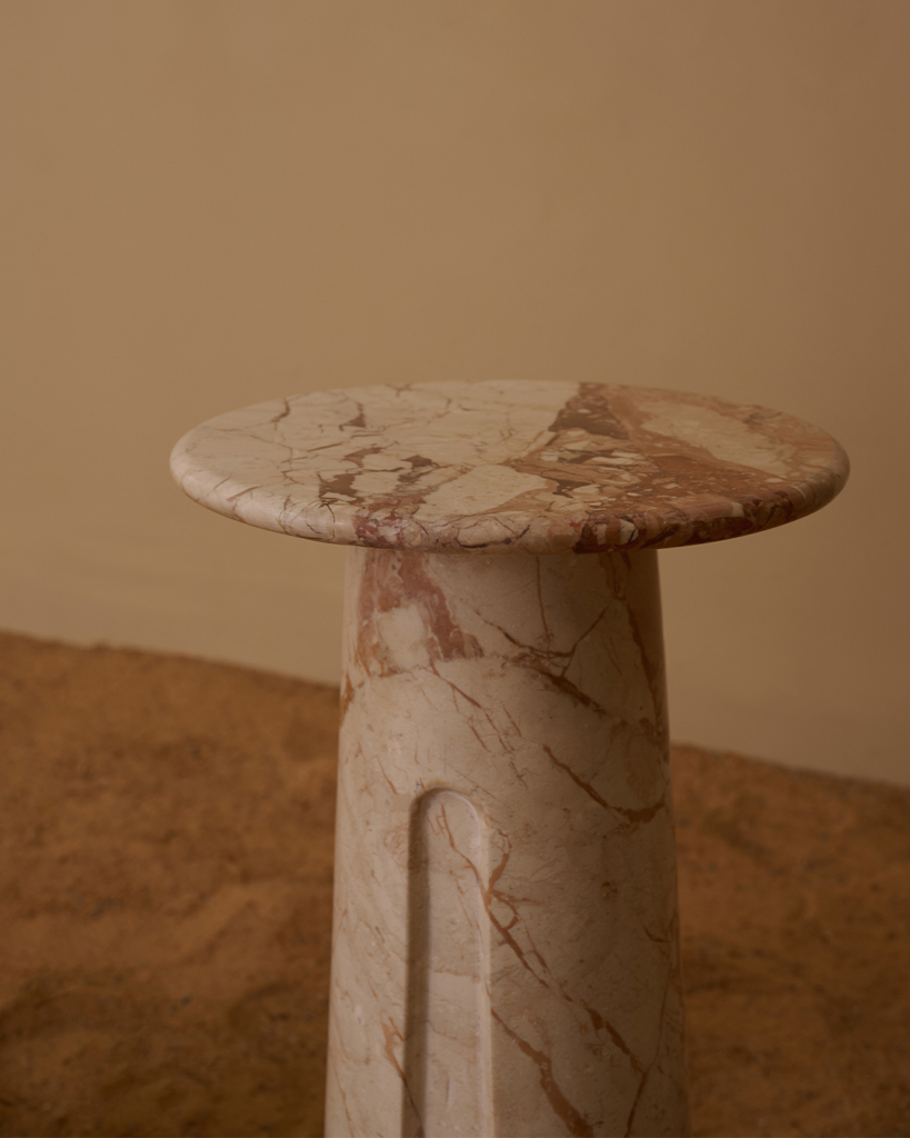 Product Highlight: The Shani Side Table embodies this principle. Crafted entirely from Golden Calacatta marble, its form draws inspiration from the celestial geometry of Saturn. The gentle curvature of its silhouette captures the planet’s rings in stone, making it both a visual centrepiece and a tactile experience.